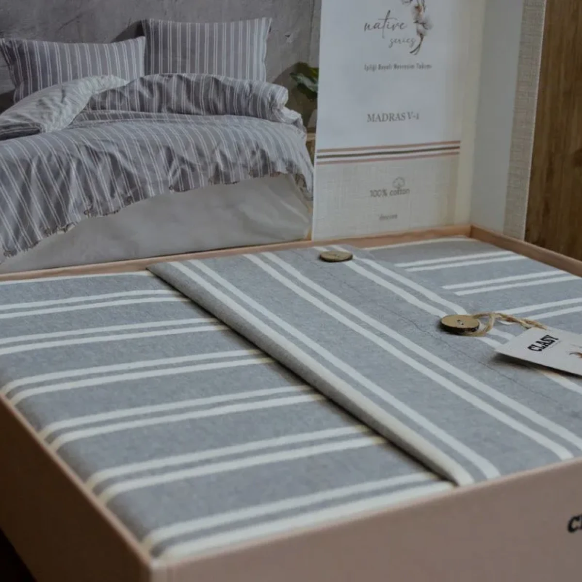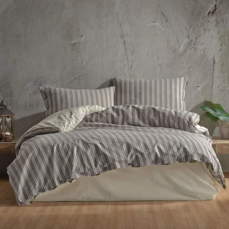 Комплект постільної білизни від TM Aran Clasy виконаний у красивому дизайні в стильну смужку. Такий комплект доповнить образ Вашої спальні та подарує затишну атмосферу. Купуючи постільну білизну ТМ Aran Clasy ви отримуєте якісну тканину і сам продукт.