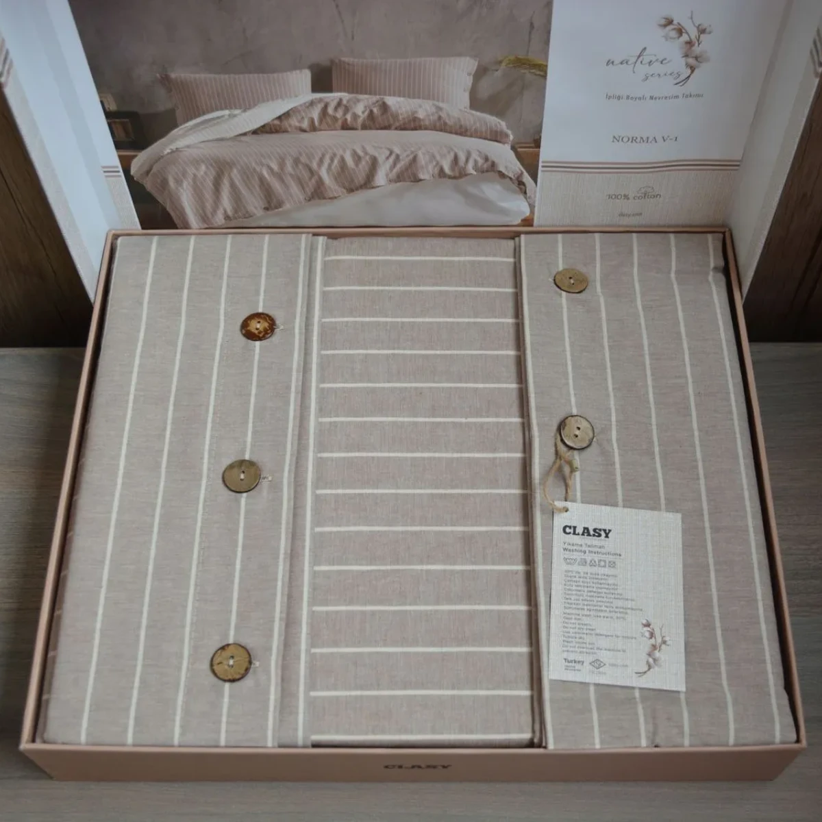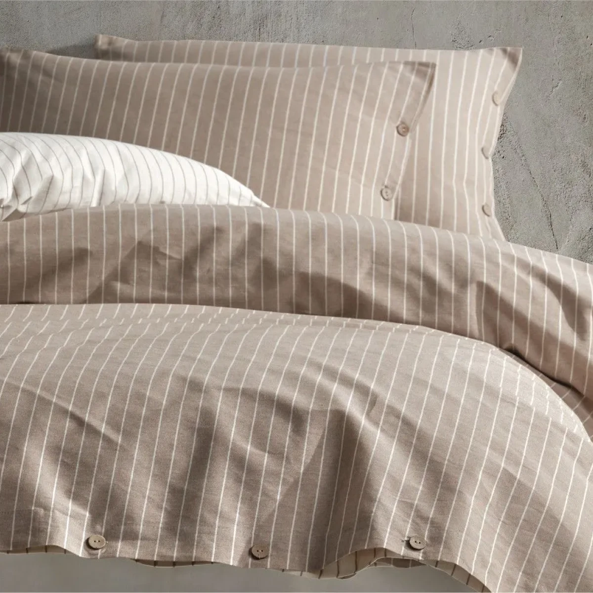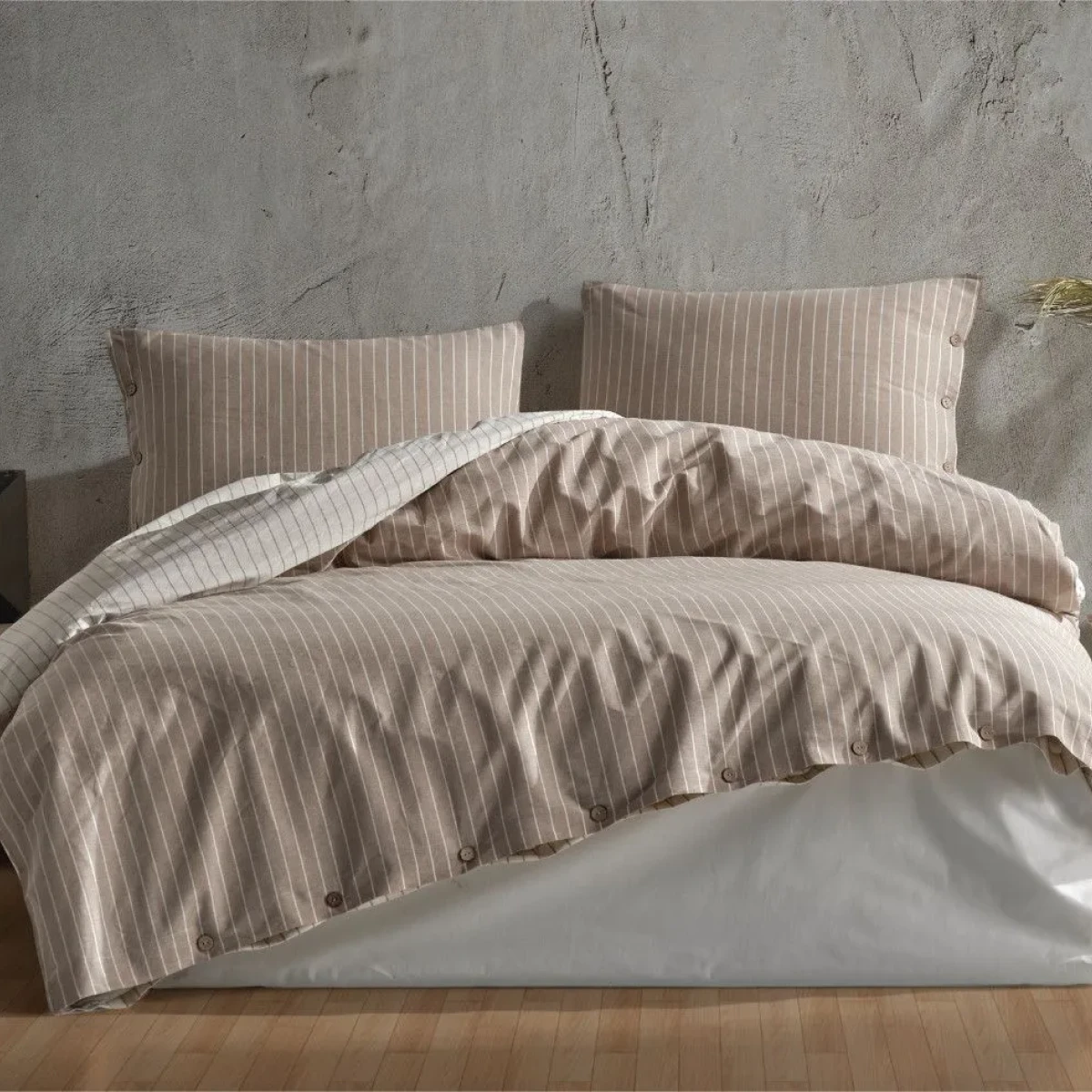 Комплект постільної білизни Norma V1 у бежевому кольорі від TM Aran Clasy виконаний у красивому дизайні в стильну смужку. Такий комплект доповнить образ Вашої спальні та подарує затишну атмосферу. Купуючи постільну білизну ТМ Aran Clasy ви отримуєте якісну тканину і сам продукт.