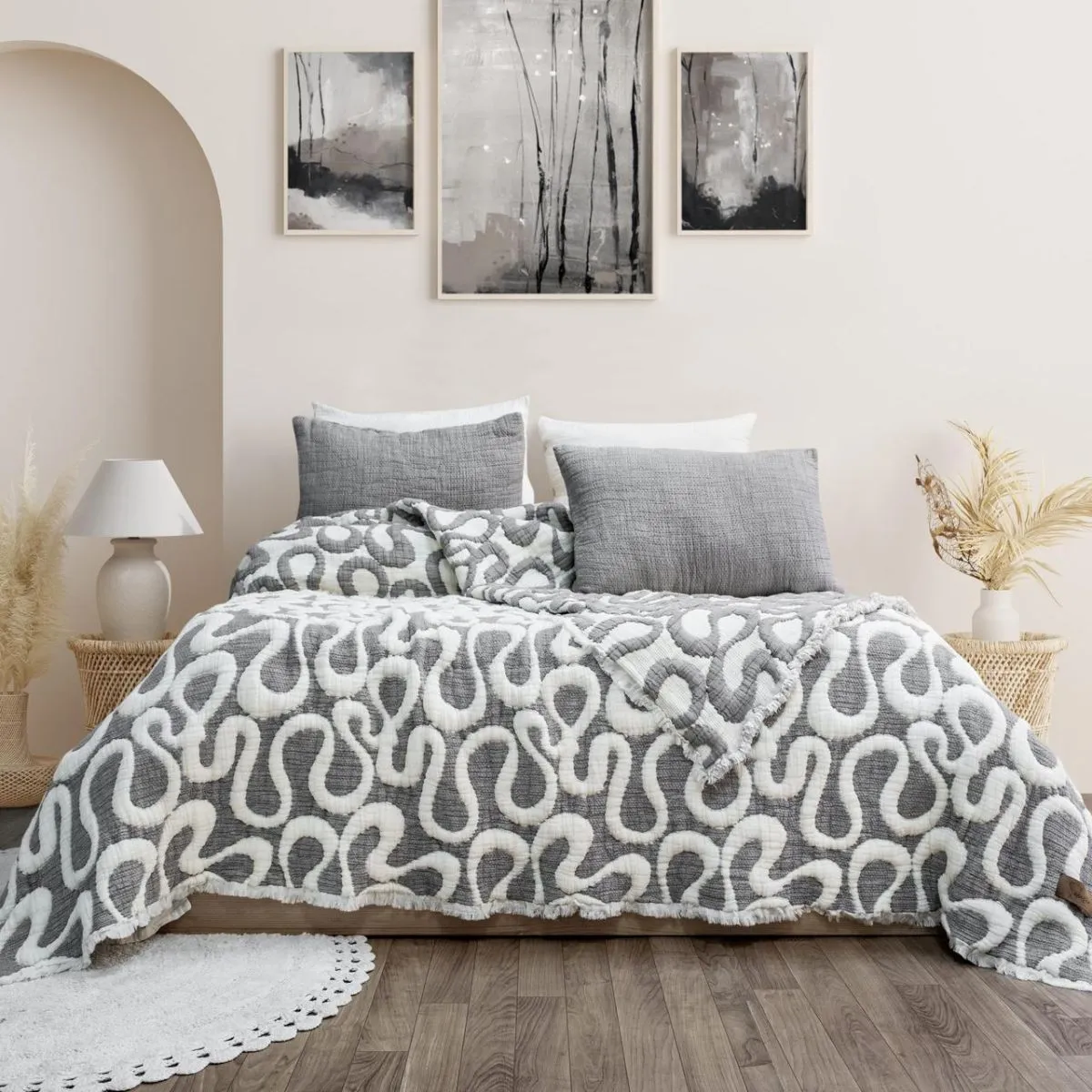 Зробіть свій дім ще комфортнішим та стильнішим! Муслінове покривало Saheser Mervis Євро 240 х 260 см Муслін Антрацит від надійного виробника Saheser стане справжньою окрасою вашого інтер'єру. Якщо ви хочете купити турецький текстиль, який служитиме роками, не втрачаючи своєї краси, цей виріб ідеально підійде. Висока якість тканини забезпечує неймовірно приємні тактильні відчуття та розкішний зовнішній вигляд.