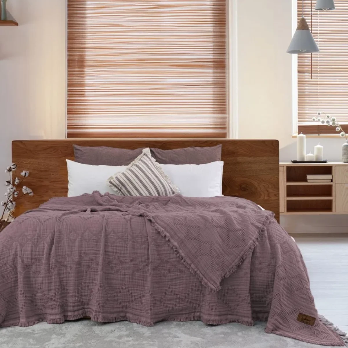 • Екологічність та безпека: Основний матеріал (Муслін) є гіпоалергенним, ідеально підходить для людей з чутливою шкірою, не викликає подразнень та забезпечує спокійний сон.