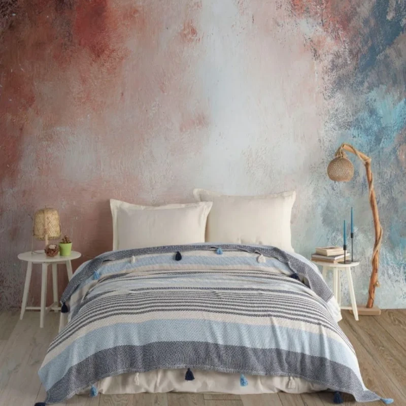 Зробіть свій дім ще комфортнішим та стильнішим! Покривало MOSS Бавовняне Basile Євро 220 x 240 см Бавовна Блакитний від надійного виробника MOSS стане справжньою окрасою вашого інтер'єру. Якщо ви хочете купити турецький текстиль, який служитиме роками, не втрачаючи своєї краси, цей виріб ідеально підійде. Висока якість тканини забезпечує неймовірно приємні тактильні відчуття та розкішний зовнішній вигляд.