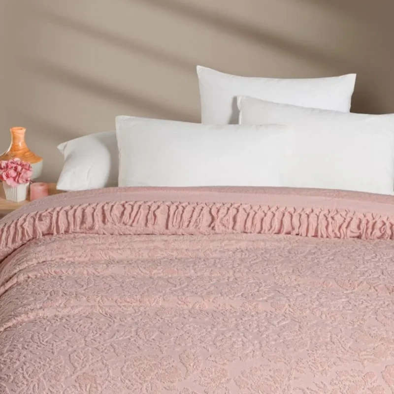 • Стильне дизайнерське рішення: Унікальна фактура та ретельно підібраний колір (Рожевий) дозволяють цьому текстилю стати справжнім акцентом вашої кімнати, підкреслюючи смак господарів.