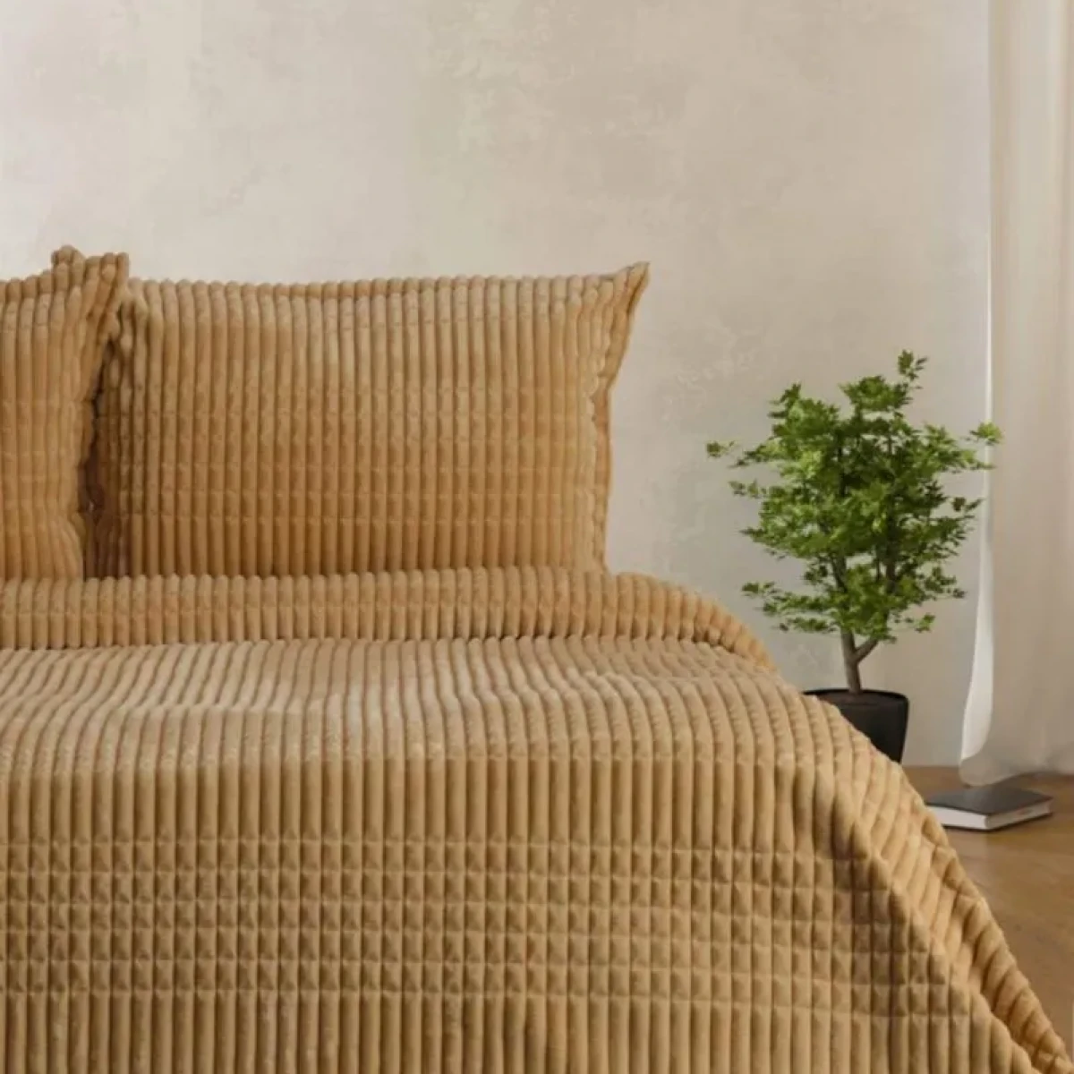 • Стильне дизайнерське рішення: Унікальна фактура та ретельно підібраний колір (Гірчичний) дозволяють цьому текстилю стати справжнім акцентом вашої кімнати, підкреслюючи смак господарів.