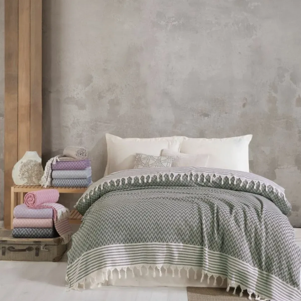 Подаруйте собі та своїм близьким повноцінний відпочинок! Якісний текстиль Покривало MOSS Бавовняне Miray Haki Євро 210 x 230 см Бавовна від бренду MOSS створений для тих, хто цінує естетику та довговічність. Купити цей виріб варто заради його натуральної фактури, стійкого до вицвітання кольору та здатності ідеально доповнювати будь-який сучасний дизайн кімнати.