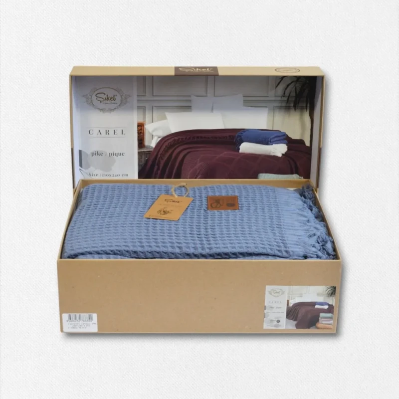 Подаруйте собі та своїм близьким повноцінний відпочинок! Якісний текстиль Покривало Sikel Carel Євро 210×240 см Бавовна Синій від бренду Sikel створений для тих, хто цінує естетику та довговічність. Купити цей виріб варто заради його натуральної фактури, стійкого до вицвітання кольору та здатності ідеально доповнювати будь-який сучасний дизайн кімнати.