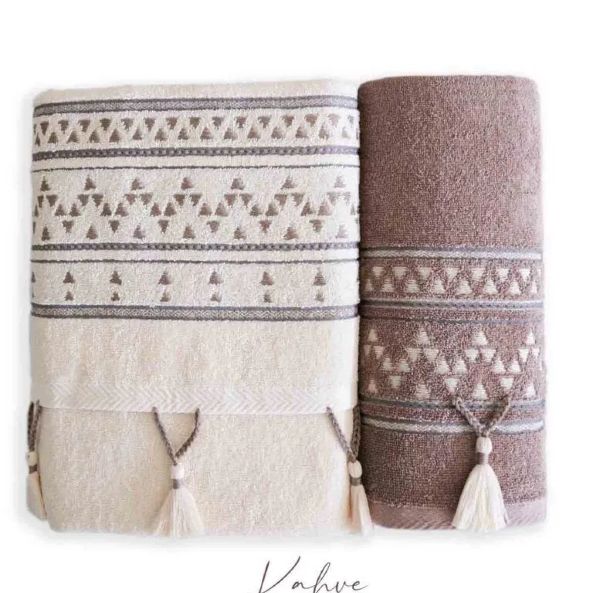 Набір махрових рушників з китицями Istanbul 50x90 см + 90x150 см Коричневий