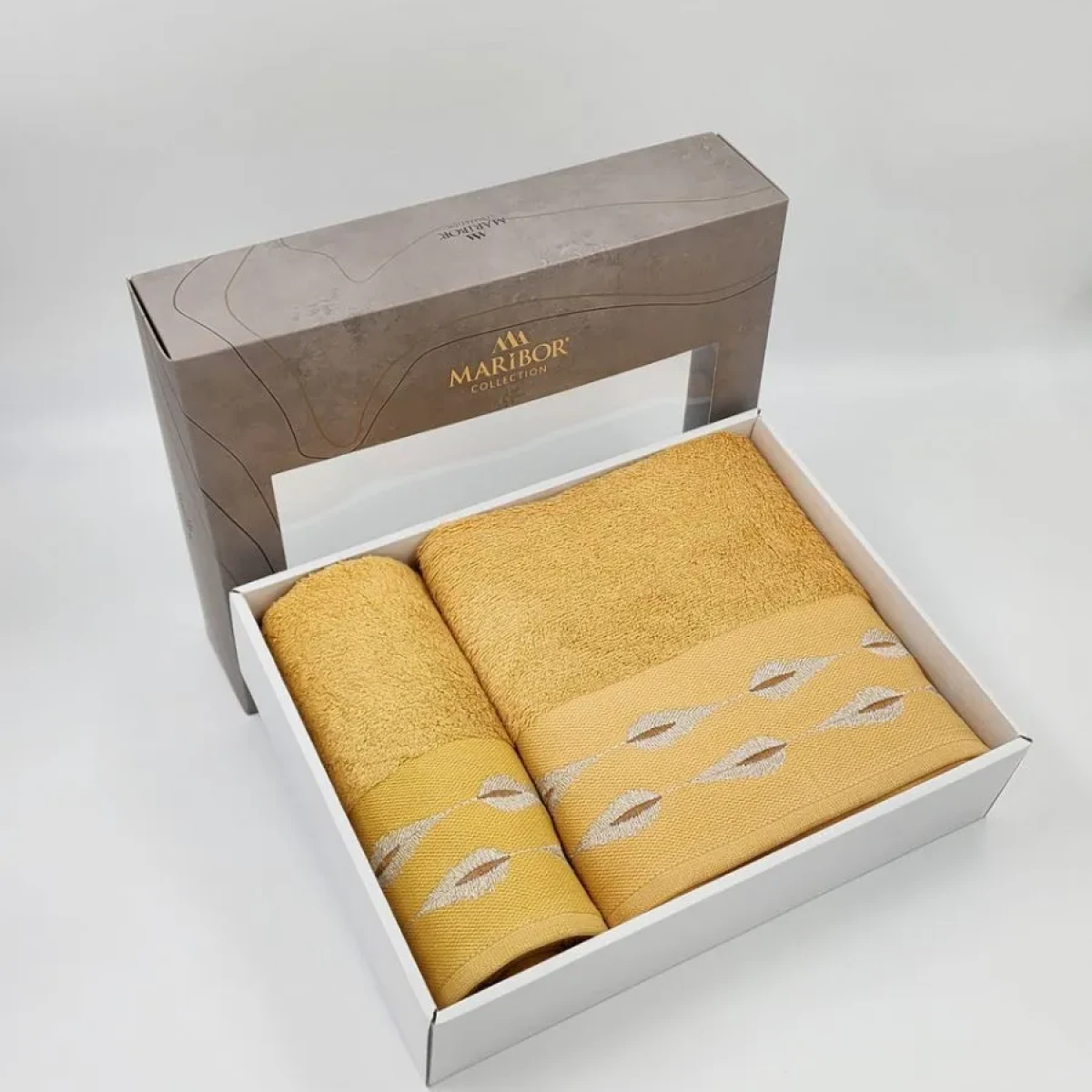 Подарунковий набір рушників Maribor Альвера — 2 шт (50x90 см + 70x140 см), бамбук-бавовна, Туреччина, Гірчичний