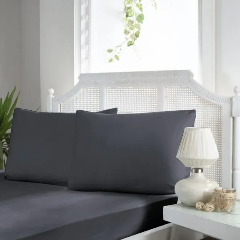 Простирадло на гумці з наволочками First Choice Сатин 160х200см Темно-сірий