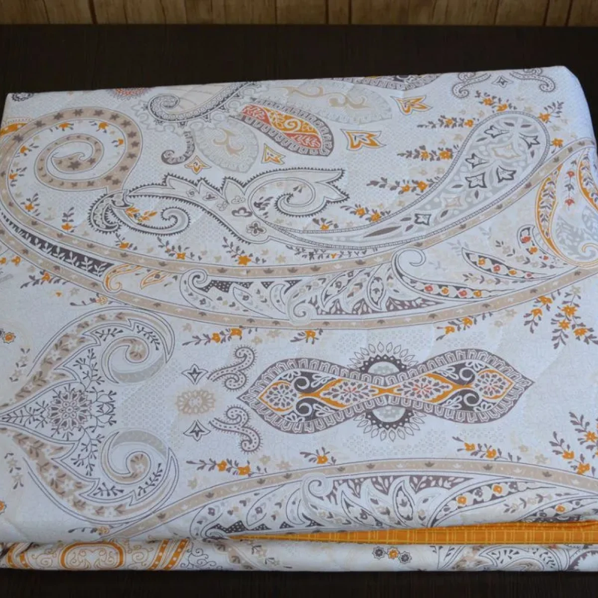 Покривало виконане з тканини стьобаної, вона являє собою полотно, яке складається з двох, зшитих між собою тканин (лицьова, виворітна), між якими знаходиться шар прокладки, що утеплює. Стібка полотна  може виконуватися нитками на швейному обладнанні та за допомогою ультразвуку – термостібка.